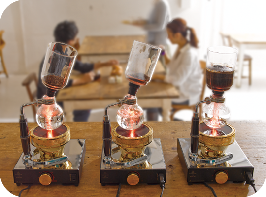 蒸気圧を使って抽出するので、抽出時間を守れば、味に差が出にくく、いつも同じ味が味わえます。目で見て愉しめるのも人気のひとつです。