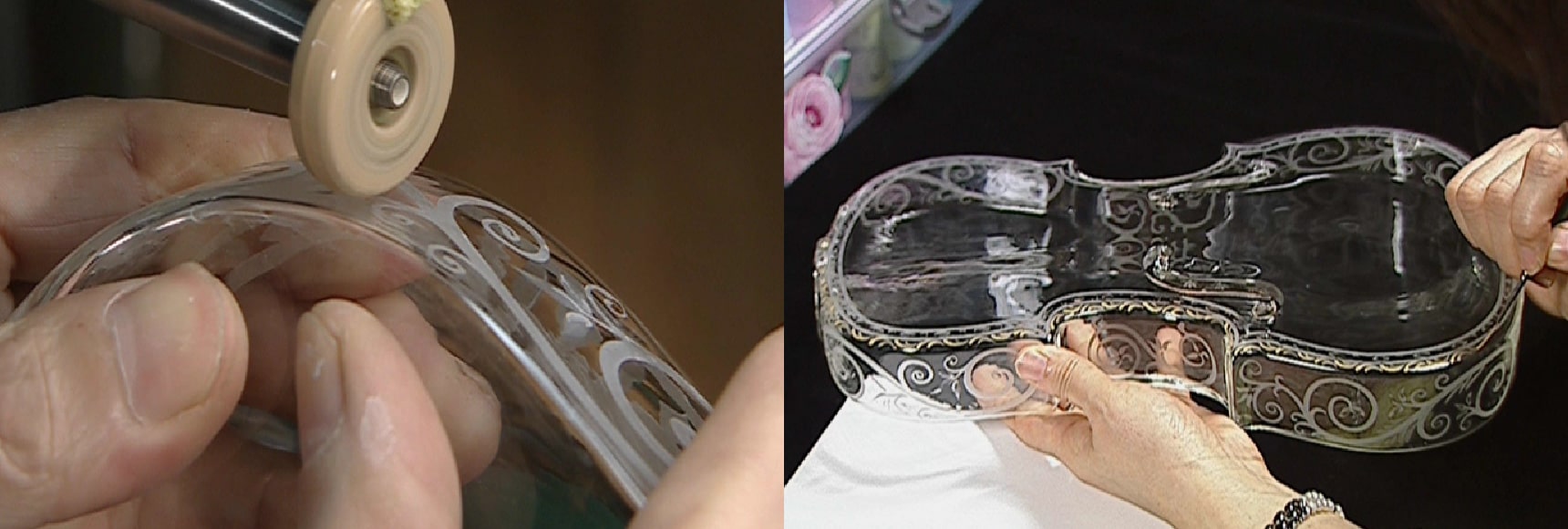 さらに、加工・グラビール加飾・ペインティングと各分野の達人の手が加わり出来上がったガラスのバイオリン