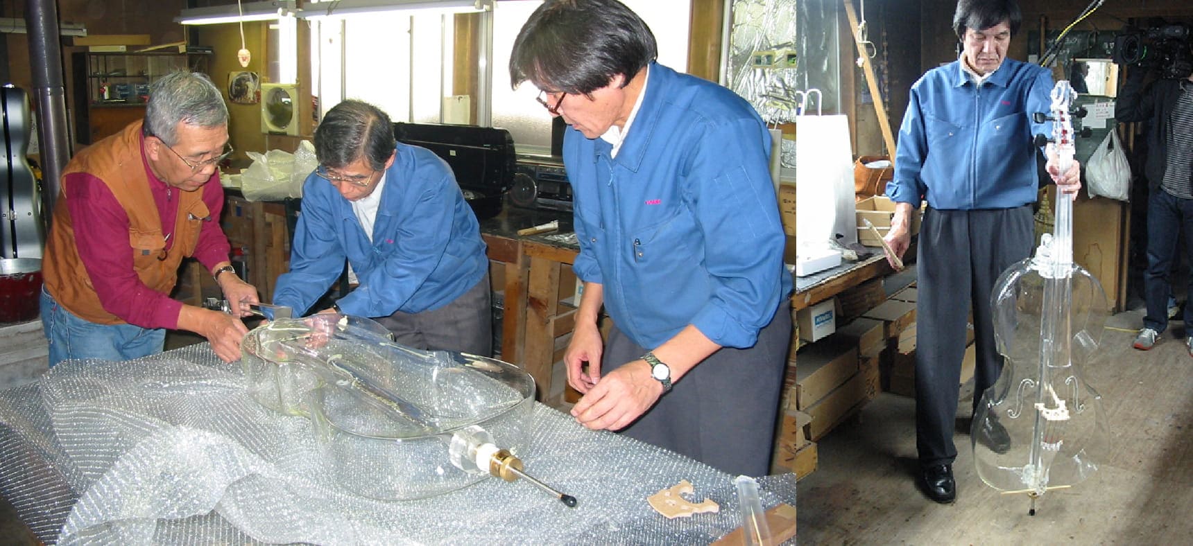 バイオリンに引き続き、チェロ・ビオラの完成により、全てガラス製の楽器による弦楽四重奏が可能となり、新たな音の可能性を広げることが出来たのです。耐熱ガラス(硼珪酸ガラス)製