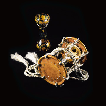 2010年にはガラスの和太鼓、小鼓、大鼓、笛が完成し、日本の伝統楽器を使ったお囃子を演奏することができました。中でも、大鼓・小鼓はガラス製の胴部分と左右に貼る革の相性で音質が大きく異なるため、いくつかの胴部分を製作し、最も良質な音を出せる胴を選びぬきました。こだわりの音質とガラスの和楽器の美しさをご堪能下さい。