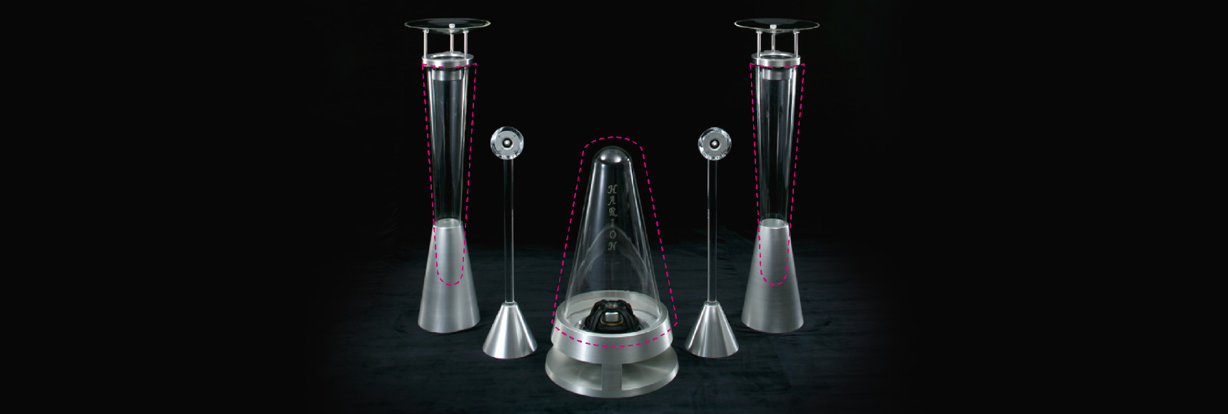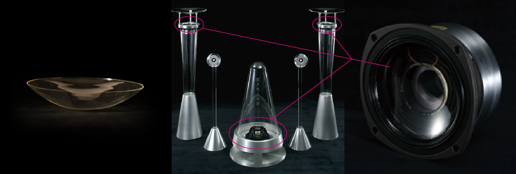 当社ではこれまでに数々のガラス楽器を製作し、発表を行いました。これらの製作を通して「スピーカーのコーン(振動板)をガラスにすることにより原音に忠実な音を出せるかもしれない」との想いから、製作・完成させたものです。