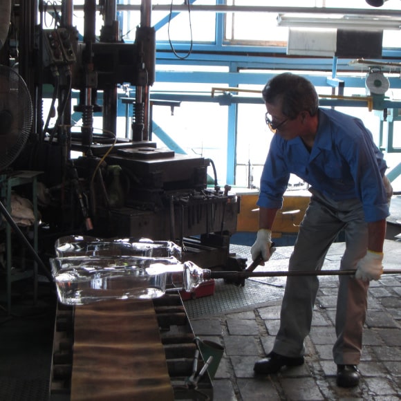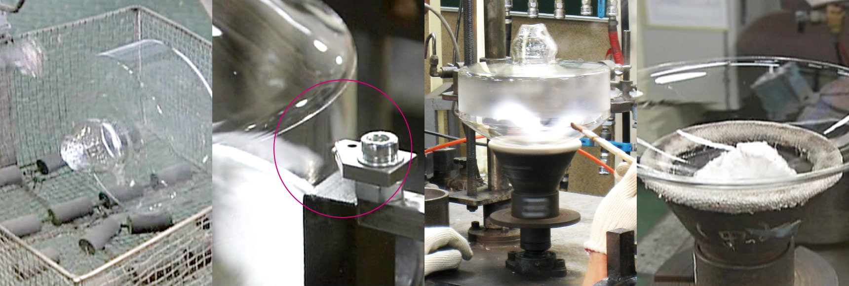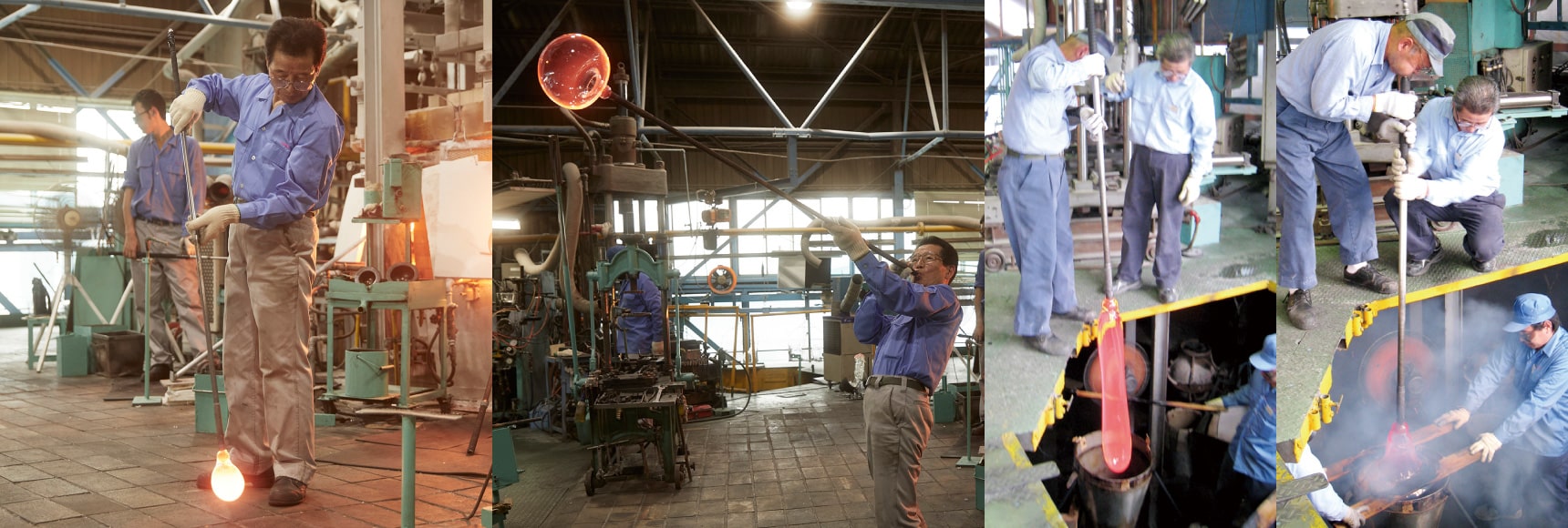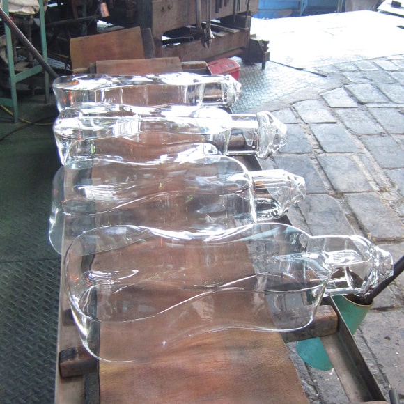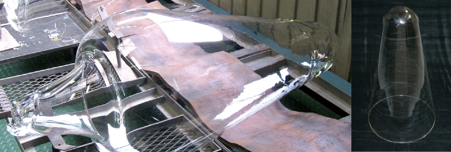 手吹きでかつ停止吹きの技術を持つ熟練の職人が試行錯誤した後、ボディーの再現に成功。