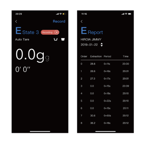 アプリのエスプレッソモードでは、スムーズに繰り返し抽出記録を取り続けることが可能。