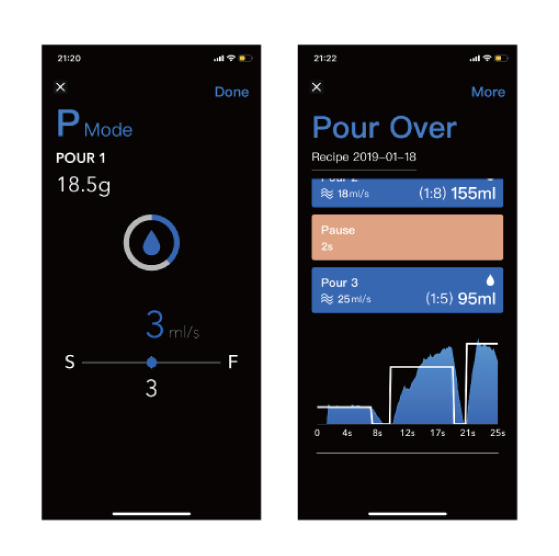 アプリのプアオーバーモードでは、デザインレシピとフリーハンドの2つの方法でマスターレシピを作成でき、それに沿って抽出することができます。
