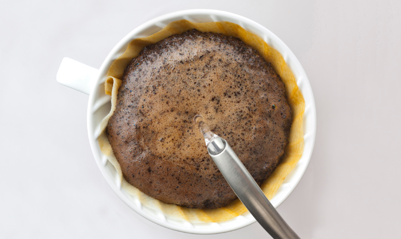 細くて長い注ぎ口は、コーヒー粉の中心により近くでドリップが可能に。