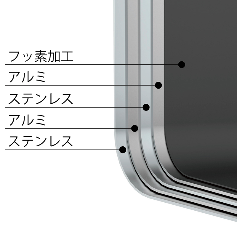 ステンレスとアルミの4層構造の鍋身は熱をまんべんなく伝え、ご飯をふっくら炊き上げます。