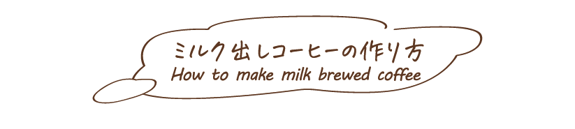 「ミルク出しコーヒー」は、コーヒー粉をミルクの中 に漬け込んで抽出する、コールドブリューコーヒー。 水も砂糖も使わないので、コーヒーの味がダイレクトに伝わる、おとなの牛乳コーヒーという味わいです。
