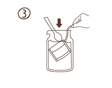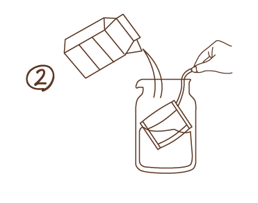 パックのひもを持ち、スプーン等でゆっくりパックを牛乳