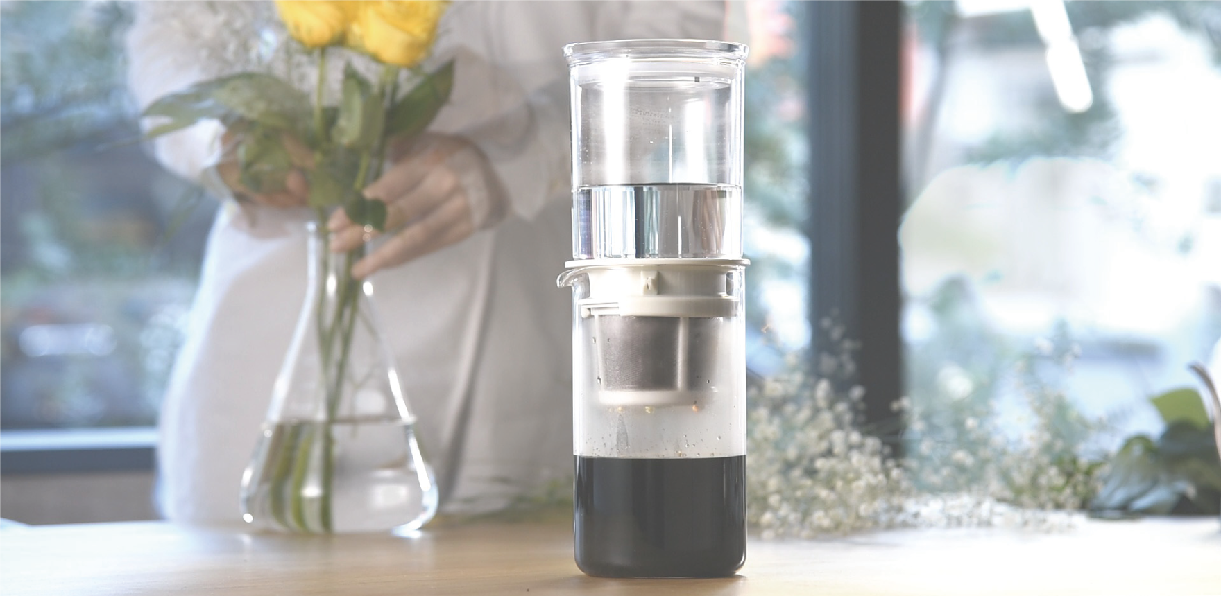 上ボールに水を入れるだけで、自然に水が滴下。45分~1時間で水たてコーヒーを抽出することができます。