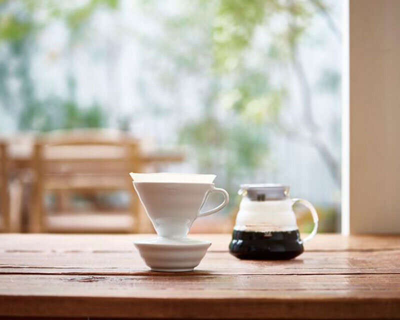 磁器製のドリップトレイはV60ドリッパー01サイズ・02サイズがのせられます。コーヒー抽出後のドリッパーをスムーズにサーバーから移動することができます。使用済みのティーバッグ置きとしても使用できます。