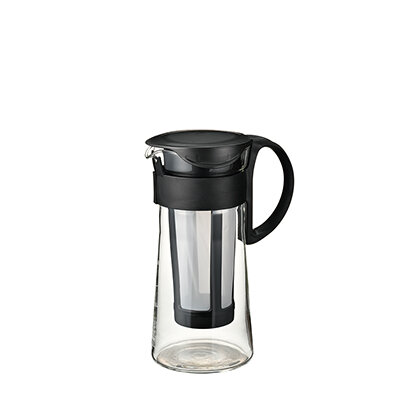 コーヒー粉と水だけでアイスコーヒーが作れます。粉全体が湿るように少量ずつ水を注ぎ、「の」の字を描くようにドリップします。水を注ぎ終えたら、冷蔵庫で8時間程抽出してできあがり。ストレーナーの底が外れて洗いやすい仕様です。