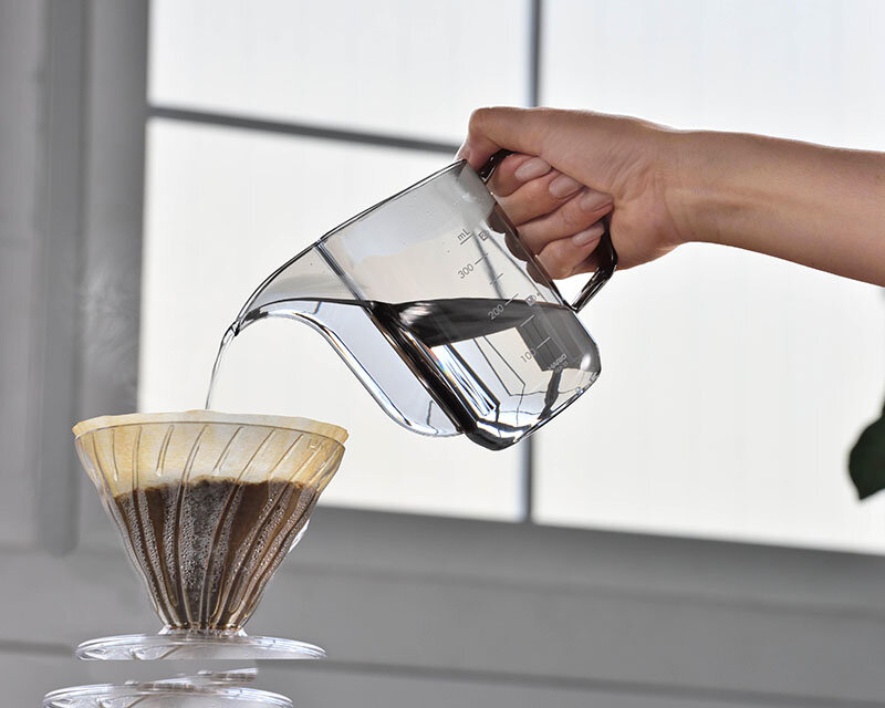 驚きの軽量感と、湯の動きが見える透明のデザインが、ハンドドリップをサポートします。コンパクトなサイズの為、収納時も場所を取りません。