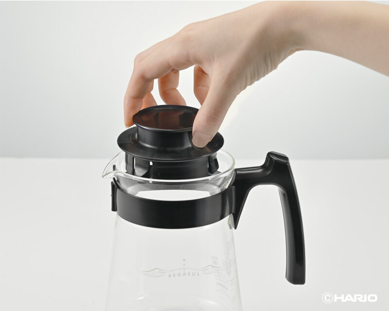 取り外ししやすいツマミフタ。フタは裏返すと簡易的なドリップトレイとして使えます。