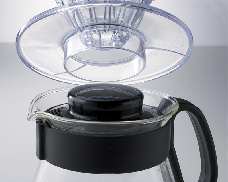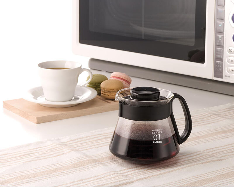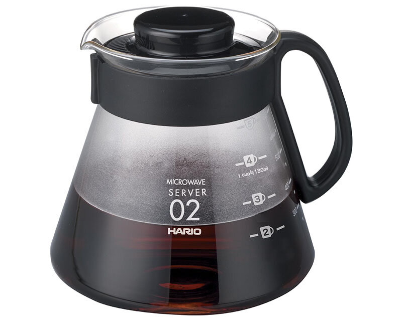 好みに合わせて抽出できる目安目盛とカップ表示付き。フタをしたまま電子レンジOK。サーバーにフタをセットしたままV60ドリッパーをのせられるため、収納時にとても便利です。
