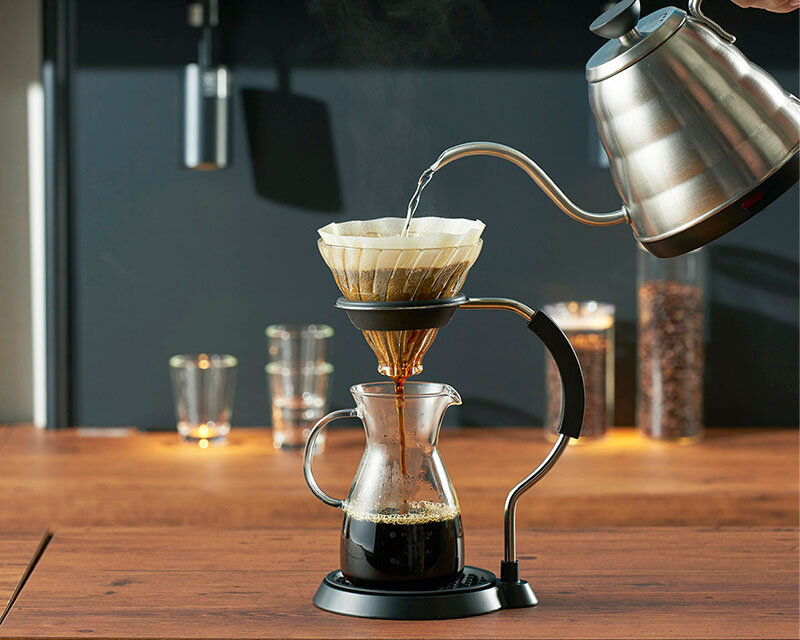 ドリッパー、サーバー、ペーパーをセットしたドリップ器具セット。