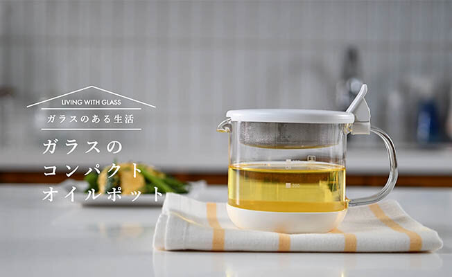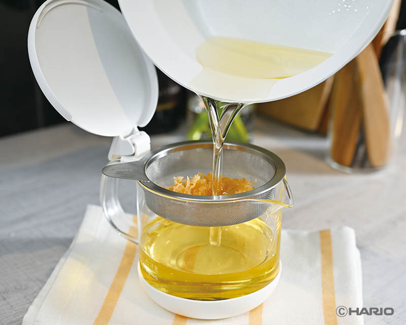 耐熱ガラス製でコンパクトサイズ。キッチンに置きやすく、油の状態も目で見てわかります。細かい汚れを漉して油を再利用でき、経済的でエコな製品です。