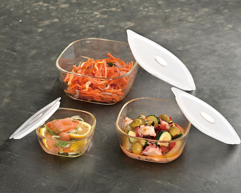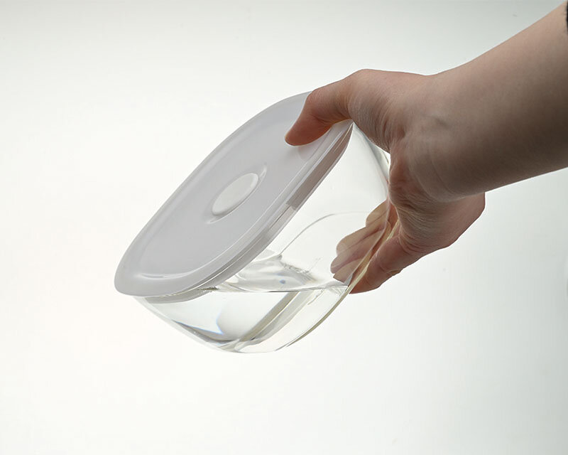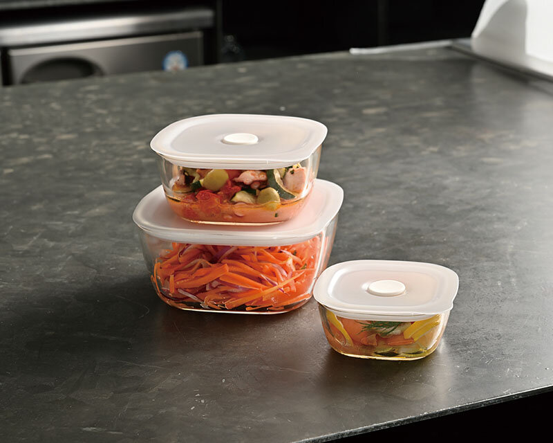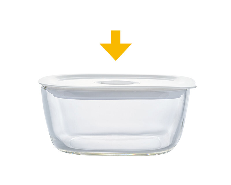 耐熱ガラス製密閉保存容器・角はパッキンが付いているので密閉性の高い保存容器です。フタの空気弁を上に引き上げると電子レンジでの使用が可能です。