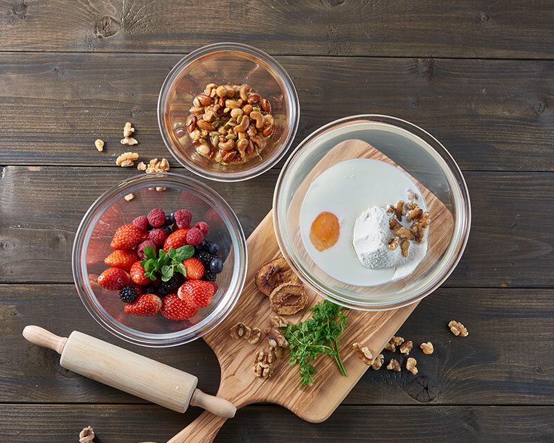 混ぜやすい、深い形状のミキシングボウル。