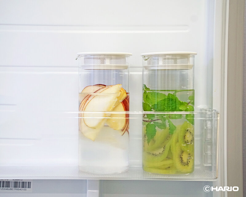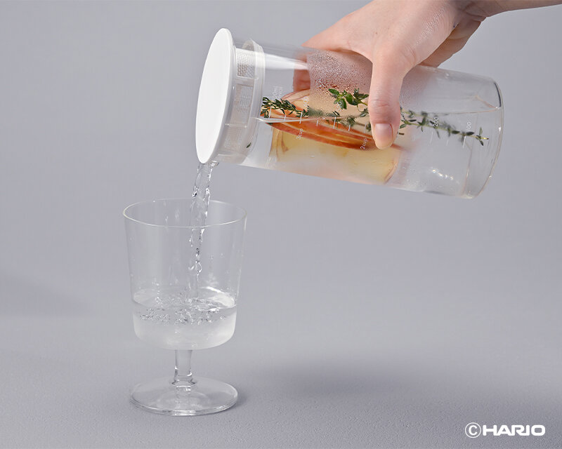 フルーツシロップの他、ビネガードリンク、水出しティー・コーヒーバッグでの抽出、出汁づくりや調味料入れなど幅広く使えるポットです。