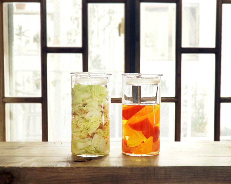 オールクリアなので清潔感があり、ドライフーズから野菜漬けまで多様にお使いいただけます。匂い移りしにくく、手になじむ細身の容器。Mizkan社の「カンタン酢」「純玄米黒酢」「純リンゴ酢」を使用したオリジナル レシピ付き。※お酢は付いておりません。
