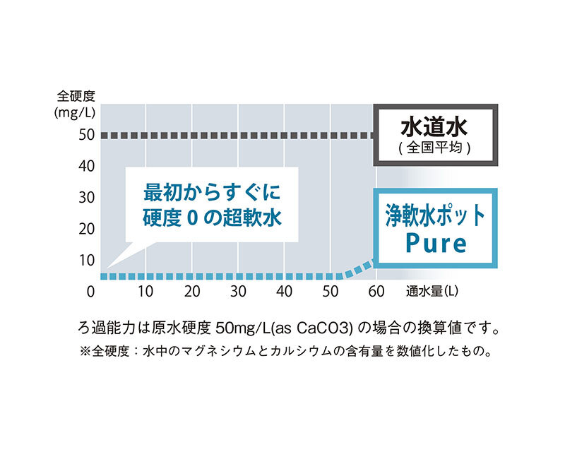 ろ過能力は原水硬度 50mg/L(as CaC03)の場合の換算値です。
