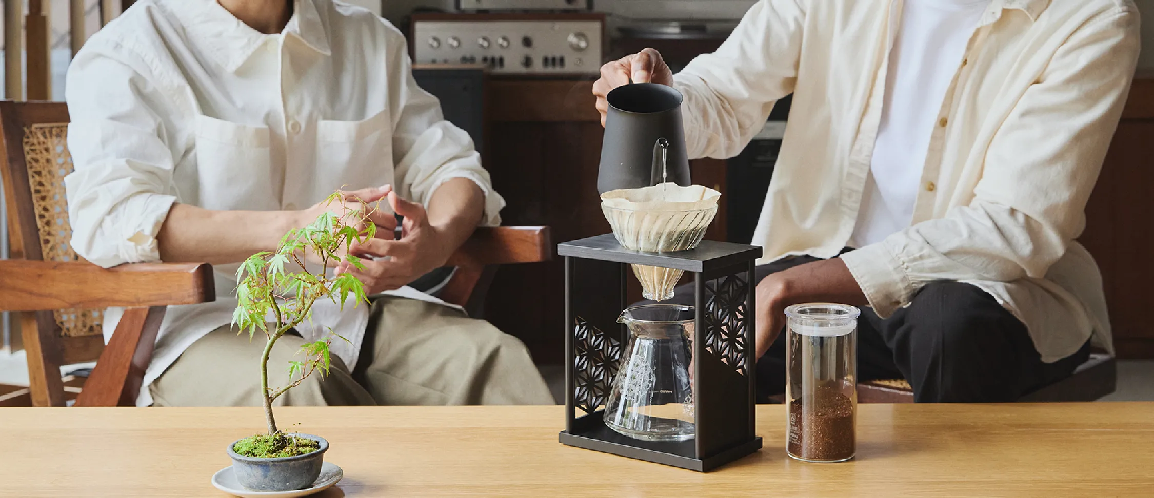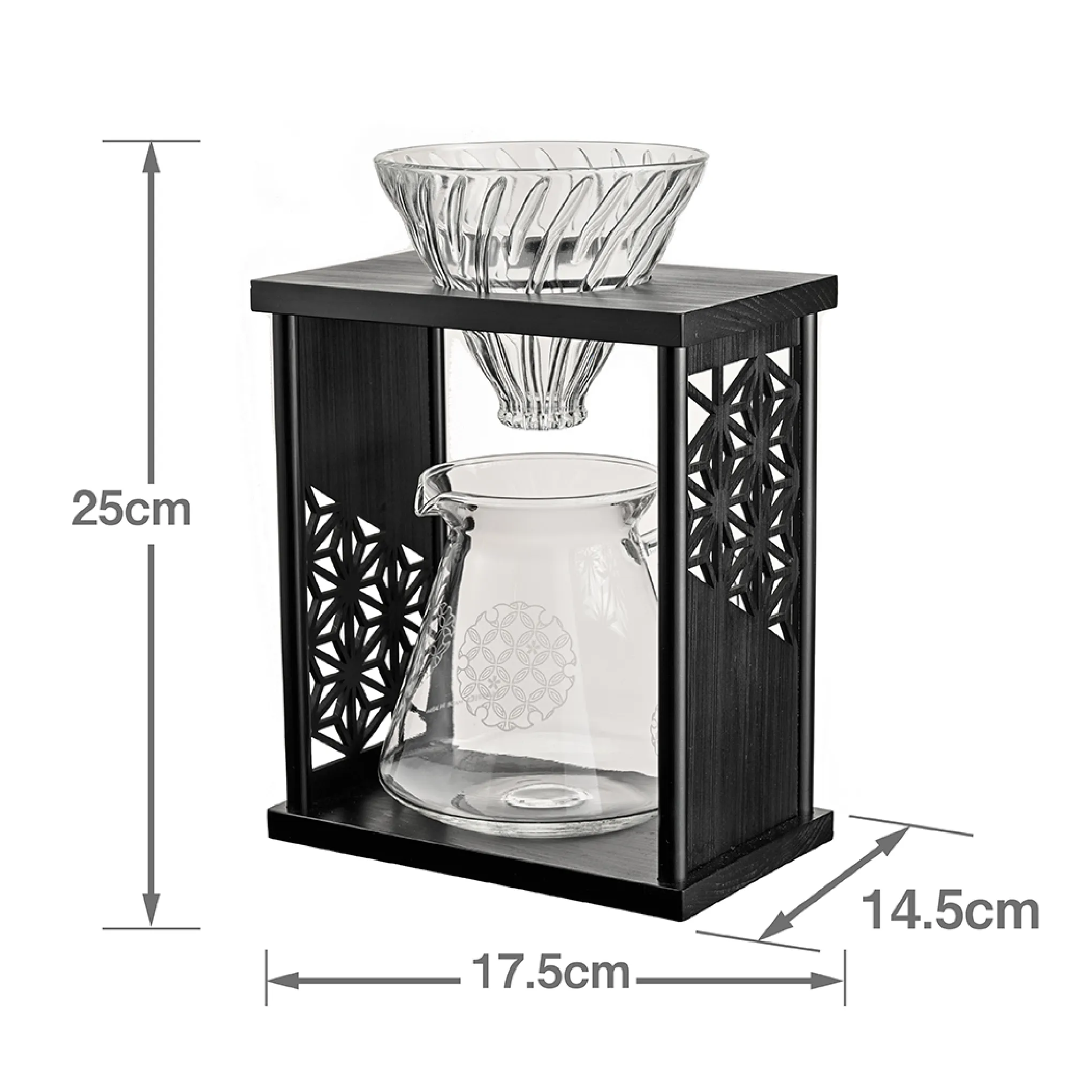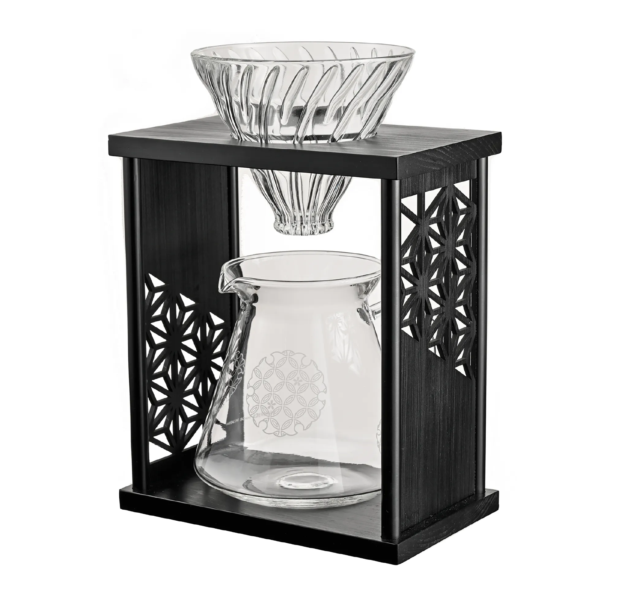 日本の伝統模様「麻の葉」をあしらったコーヒードリップスタンド。無病息災などの願いが込められた縁起の良いデザインで、日々のコーヒータイムに和の趣と温もりを添えます。