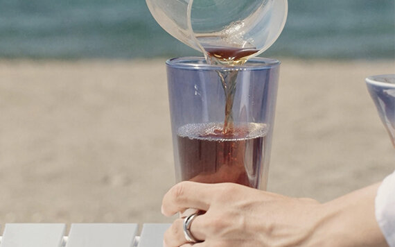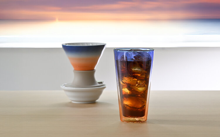 熱い飲み物を入れてもグラス表面が熱くなりにくく