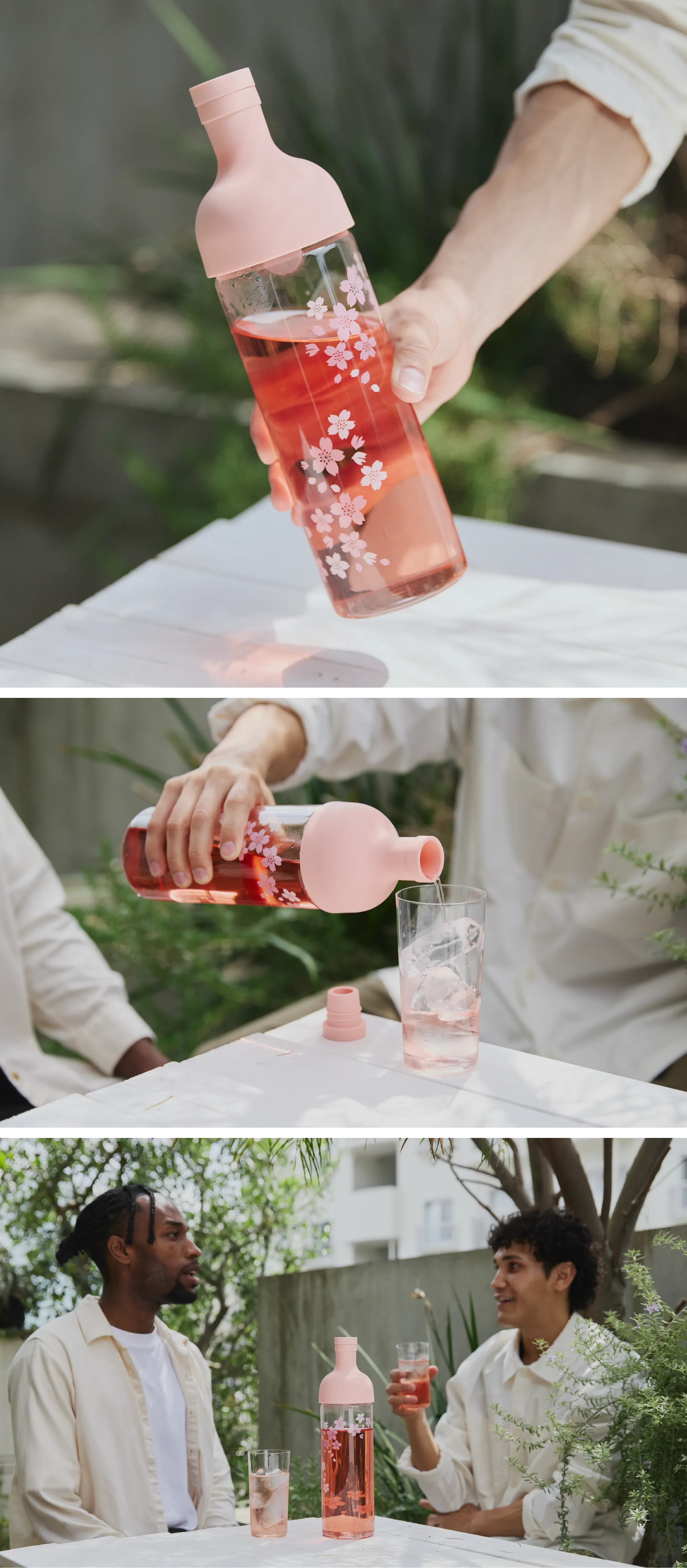 その繊細な魅力をかたちにした、桜の柄を纏うボトルです。淡く舞い散る花びらが、静かな佇まいの中に優しさと華やぎを添えます。