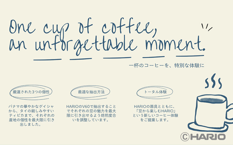 今回のラインナップは、HARIOのコーヒー器具と組み合わせることで、“抽出”だけでなく“豆選びから愉しむ”という新しいコーヒー文化を体感していただける提案です。