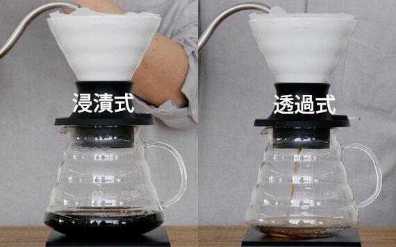 コーヒー粉をお湯に浸し漬けて抽出する「浸漬式」と、