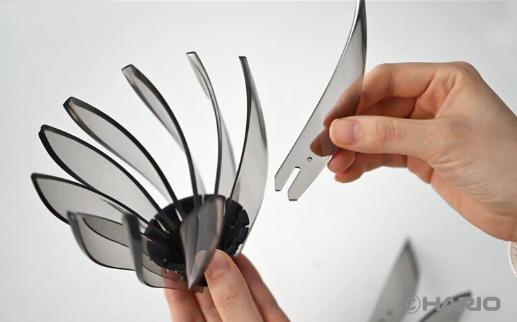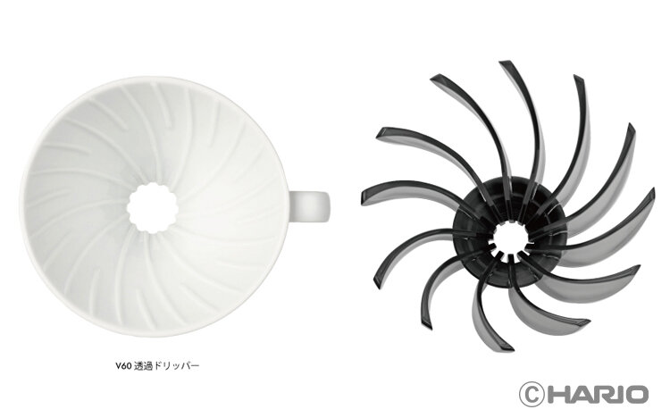 世界のバリスタに愛用されている、円すい形ドリッパー「V60透過ドリッパー」の象徴「スパイラルリブ(凹凸)」を取り出した構造。