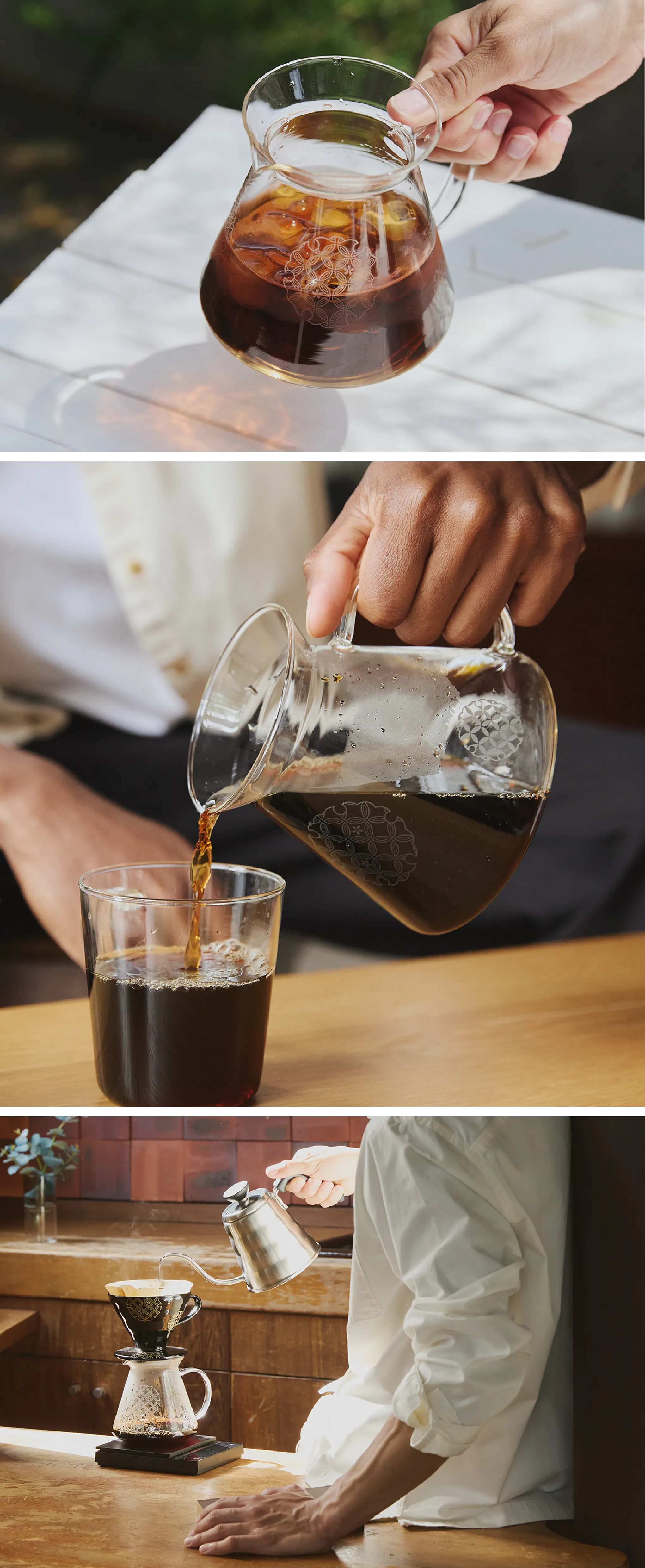 上品な七宝柄のデザインは、サーバーに注がれたコーヒーの色味を引き立て、和のぬくもりと落ち着きを感じさせてくれます。日常のコーヒータイムを、心和らぐ特別な時間に演出してくれる一品です。