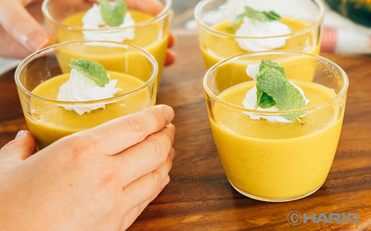 耐熱ガラス製で中が見え、料理やデザートが映え、グラスとしても
