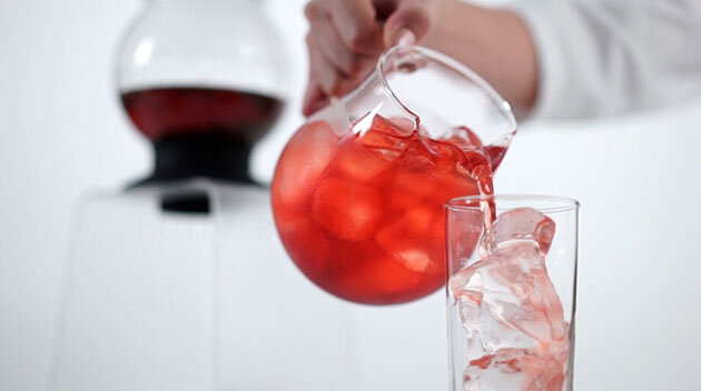 ティードリッパーでお茶を抽出後、スイッチを押して一気にピッチャーへ注ぎ込みます。ピッチャーに氷を入れることでアイスティーが手軽においしく飲むことができます。