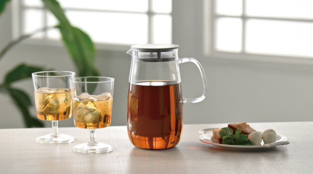 麦茶本来の深い味わいを楽しむには、直火で水を沸騰させ、抽出後に粗熱をとり急冷する手間がかかります。レンジでかんたん麦茶ポット むぎちゃんは、レンジで少量の水を加熱し、ティーバッグを加えるだけで濃い麦茶を短時間で抽出できます。あとは水で希釈し、麦茶本来の深い味わいをお愉しみいただけます。火を使わないので安心です。フタには茶こしが付いており、さまざまな茶葉のお湯出しや水出しも可能です。容量は高さを抑えつつ1リットル。冷蔵庫のドアポケットにも収まり、日々の暮らしにぴったりのポットです。