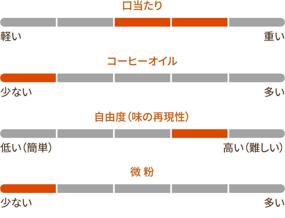※本チャートはあくまでも指標であり、抽出条件や豆の種類などで所感が異なる場合があります。