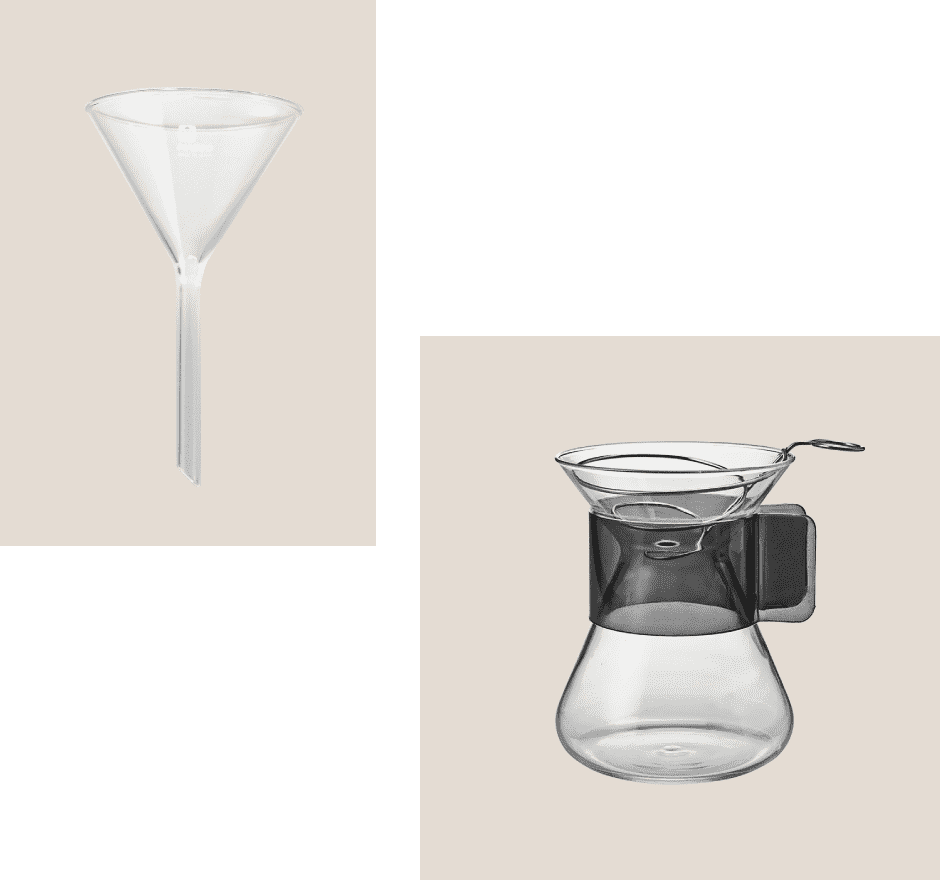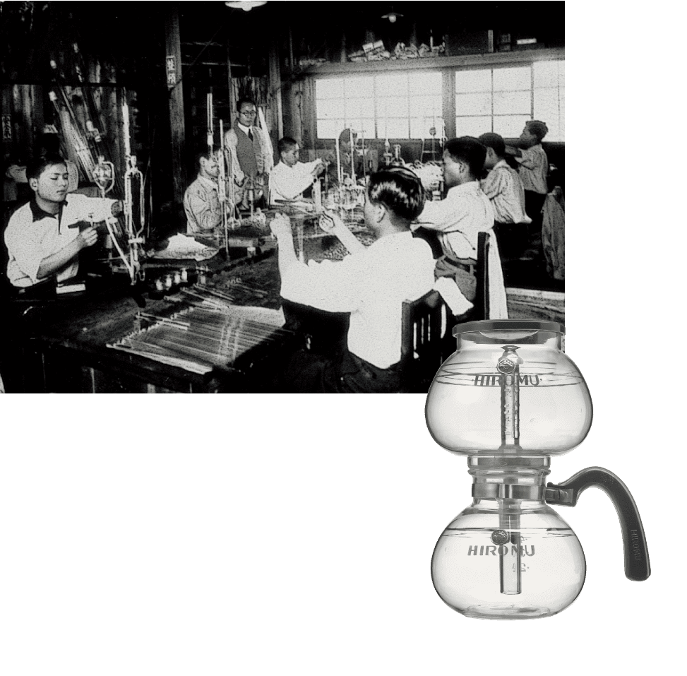 - V60開発時はコーヒーメーカーで入れたものが主流で、ドリッパーも半世紀以上舟形(扇形)が使用されている中、あえて円すい形のドリッパーを開発したHARIO。1921年の創業時から理化学品の製造・販売をしており、その耐熱ガラスの技術を活かし、初めて手がけた家庭用品・コーヒー器具が「コーヒーサイフォン」でした。